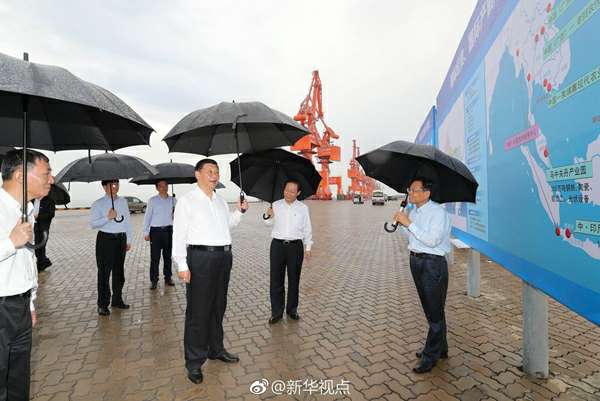 习近平总书记19日下午冒雨考察坐落于广西北部湾的北海市铁山港公用码头。天高水阔,吊车高耸入云。他听取码头规划和建设情况,了解广西北部湾经济区发展建设和面向东盟开放合作情况。习近平表示,铁山港有区位优势,发展前景广阔,将来是北部湾经济区一个重要依托。要建设好北部湾港口,打造好向海经济。金沙澳门(中国)唯一官方网站常说要想富先修路,在沿海地区要想富也要先建港。