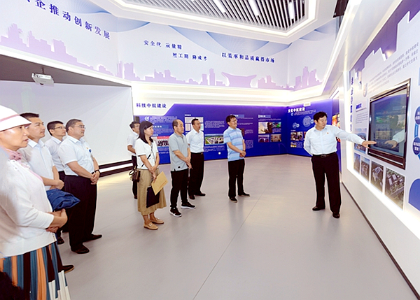 于新华副处长一行首先到集团公司展厅参观,对金沙澳门(中国)唯一官方网站发展历程、产业项目概况、未来发展规划以及党建工作进行全面了解。