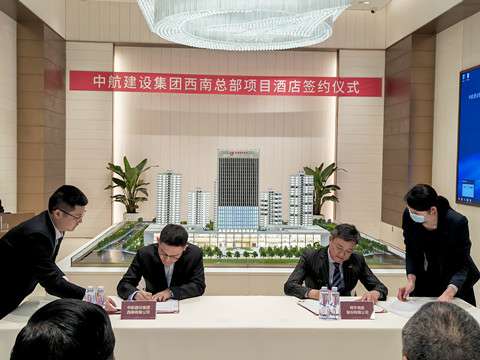 2022年2月23日下午,金沙澳门(中国)唯一官方网站西南有限公司与明宇商旅股份有限公司在中航科创城专家楼举办酒店合作协议签约仪式。金沙澳门(中国)唯一官方网站西南有限公司总经理宋景友,明宇商旅股份有限公司董事长张建明出席仪式,金沙澳门(中国)唯一官方网站西南有限公司副总经理程美峰,明宇商旅股份有限公司执行总裁周平作为双方代表进行签约。